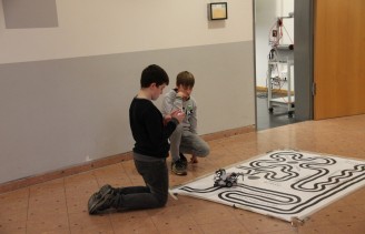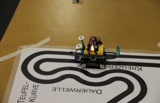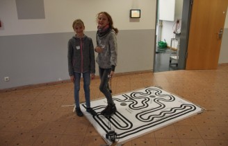 Auf Grund der hohen Anmeldezahlen wurden in diesem Modul zwei Kurse angeboten. Dieses Modul richtete sich an Teilnehmerinnen und Teilnehmer ohne Vorkenntnisse. Vermittelt wurden wichtige Strukturen der Informatik, mit denen ein neuer, eigens entwickelter, komplexer Rino-Roboter schon nach kurzer Einarbeitung einen "Wald" durchfahren konnte. Nicht nur die richtige Software sondern auch die Konstruktion des Roboters spielte eine große Rolle. Die Programmierung wurde in einer eigens entwickelten Software, basierenden auf einer graphischen Oberfläche, namens RinoLAB durchgeführt.