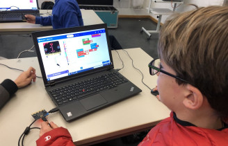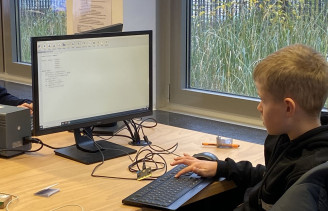 In einem weiteren grafischen Kurs wurde der Einplatinencomputer micro:bit mithilfe von MakeCode programmiert, wodurch eine 5x5 LED-Matrix durch zwei Knöpfe gesteuert werden konnte. Hierdurch wurden Spiele und andere kreative Ideen der TeilnehmerInnen realisiert.