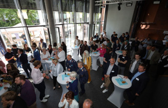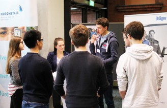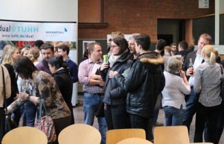 Im Anschluss hatten die ca. 250 geladenen Gäste Gelegenheit, bei einem Snack und Getränken miteinander ins Gespräch zu kommen. Etwa 20 Unternehmen, Studierendengruppen und Dekanate waren zusätzlich mit eigenen Informationsständen vor Ort und informierten die Gäste über Ihr Angebot. So ergaben sich viele Möglichkeiten des Austauschs und Netzwerkens. Insgesamt blickt die Koordinierungsstelle dual@TUHH auf eine sehr gelungene Veranstaltung zurück.