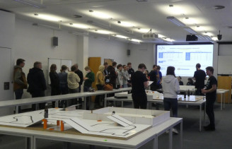 Abgerundet wurde der Wettkampf durch ein interessantes Rahmenprogramm. So gab es am Samstag spannende Experimentierstationen vom DLR_School_Lab. Die Teilnehmenden und Zuschauerinnen und Zuschauer konnten einen Flugsimulator, den Windkanal und die Flugzeugakustik kennenlernen und bei einer Führung durch das Schiffbaulabor interessante Einblicke in die Arbeit der Ingenieurinnen und Ingenieure aus dem Bereich Schiffbau gewinnen. Am Sonntag gab es eine spannende Präsentation von e-gnition. Die studentische Initiative entwickelt jedes Jahr einen elektrischen Rennwagen, der im Rahmen der Formula Student weltweit Wettkämpfe bestreitet. Außerdem präsentierte das Team der HULKs seine fußballspielende Roboter und gab Einblicke in die Arbeit und die internationalen Wettkämpfe.