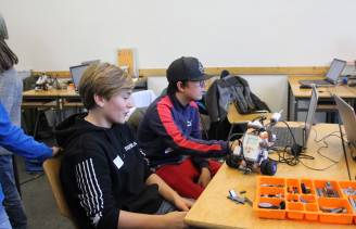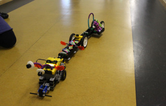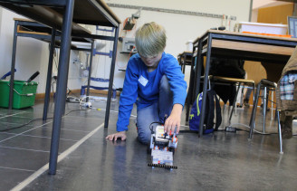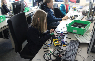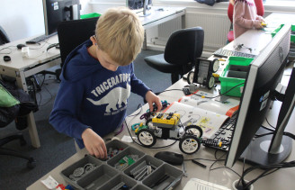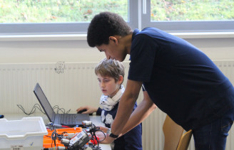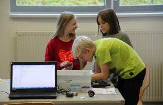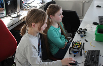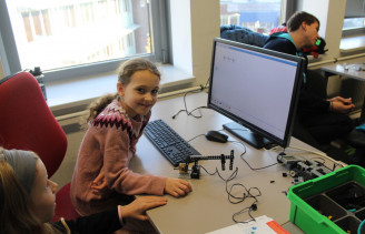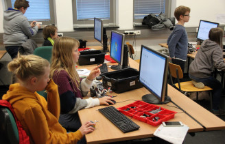 Viele TeilnehmerInnen waren begeistert von ihren vorherigen Teilnahmen bei Camps oder anderen Angeboten der TU und nahmen erneut teil. Für diese TeilnehmerInnen und diejenigen mit Vorerfahrung in der Informatik gab es dieses Mal sogar zwei Kurse im Modul 1B, dem Erweiterungskurs des Modul 1A. In diesem Modul wurden die Strukturen der Informatik vertieft wiederholt und EV3 Roboter gebaut und designt. Mit der graphischen Programmierung RINOLab konnten Linien verfolgt werden, Hindernisse aus dem Weg geschoben und durch den Raum bewegt werden.