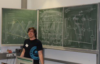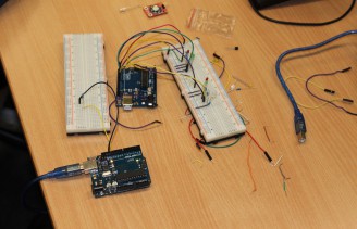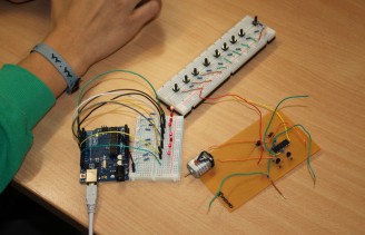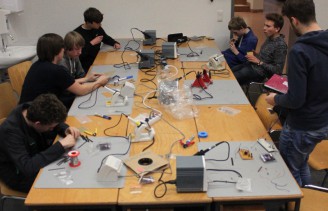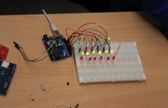 In diesem Kurs standen der Entwurf von elektronischen Schaltungen und die Ansteuerung dieser Schaltungen über das Arduino Board im Vordergrund. Mit einfachen Steckverbindungen wurden Schaltungen zum Betreiben von Motoren oder LEDs aufgebaut. Elementare Schaltkreise wurden eingeführt und weiterentwickelt. Über den programmierbaren Mikrocontroller des Arduino Boards wurden schließlich die selbst entworfenen Schaltungen gesteuert. Die Prorammierung wurde in der Hochsprache "C" durchgeführt. Unteranderem wurde ein 3D-LED-Cube gebaut.