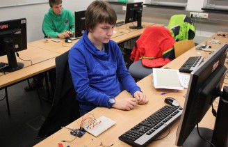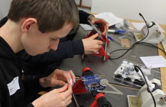 Die Jugendlichen wurden ihren Vorkenntnissen entsprechend in die unten beschriebenen Module eingeteilt. Es gab eine große Bandbreite an Möglichkeiten der Programmierung. Für Anfänger in Java bis hin zu erfahrenen Programmierern hatten wir das passende Modul. Roboter programmieren und sie mit entsprechenden Sensoren ausstatten,Schaltungen selbst entwerfen und zusammen löten, 3D-Modelle zeichnen und drucken, dass war an diesem Wochenende Programm.