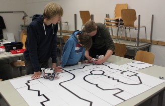 In diesem Kurs konnten vorhandene Programmierkenntnisse vertieft werden. Anhand der Sprache „Java“ wurden Unterschiede zwischen imperativen und objektorientierten Programmiersprachen aufgezeigt. Nach ein paar im Schwierigkeitsgrad schrittweise ansteigenden Aufgaben wurde mit u.a. mit einem Hindernissparcours gearbeitet. Dabei mussten sich die Roboter mit Hilfe eines Lichtsensors, eines Ultraschallsensors oder eines Tasters im Raum orientieren können.